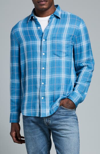 Billy Reid Cypress Plaid Double Face Cotton Button-Up Shirt, Alternate, color, Washed Indigo