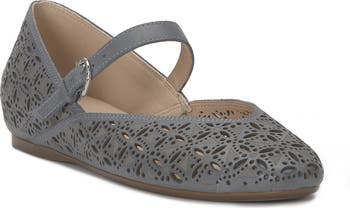 Floral cutouts bring breezy allure to this classic mary jane flat that always has you in style whether you're going to a casual or dressier event.