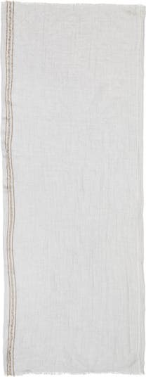 Distinguished by its floaty fringed edge, this gauzy striped scarf is crafted in Scotland from a soft, drapey blend of wool, cashmere and silk for effortless fluidity.
