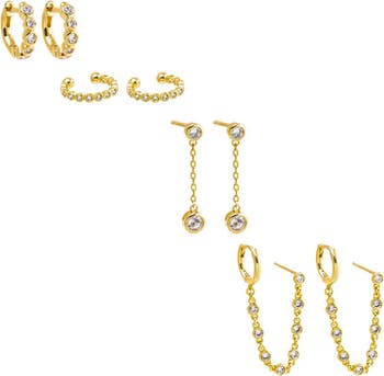 BY ADINA EDEN CZ Bezels All Around Earring Combo Set, Main, color, Gold
