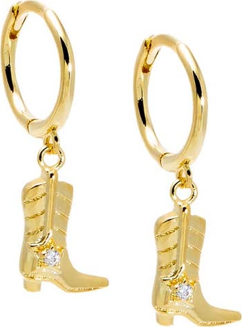 Add statement appeal to your look with the CZ Cowboy Boot Huggie Earring by Adina Eden, a must-have Earrings set. Featuring smooth curves and radiant finishes, this cute huggie earrings set is available in Gold. Designed for the real world, it brings a thoughtful finish to your look, no matter how relaxed or refined your outfit is. Stack this gold plated huggie earrings set with styles from our Ear Cuffs & Drops collection to build a signature look you'll love. One wear in, and it's already your new everyday favorite.