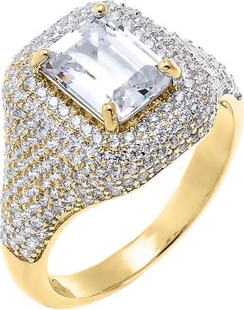 CZ Emerald-Cut Pavé Dome Pinky Ring