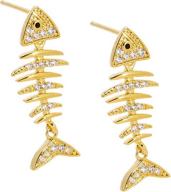 Elevate your stack with the CZ Fish Skeleton Dangle Earring by Adina Eden, a go-to Earrings set that levels up your look. With its distinctive design and luxe finish, this cute earrings set is available in Gold to elevate your look. Designed for the real world, it brings a thoughtful finish to your look, no matter how relaxed or refined your outfit is. Pair this gold plated earrings set with accents from our Earring Combo Set collection for a timeless, layered effect. You'll wear it often—and it wears beautifully every single time.