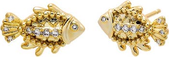 The CZ Fish Stud Earring by Adina Eden is the piece your Earrings set collection didn't know it needed. Delicate but distinct, this earrings for women set comes in Gold to match any look. When your outfit needs polish without the pressure, this piece offers that low-effort, high-reward finish we all love. Mix this gold plated earrings set with selections from the Ear Cuffs & Drops collection to complete your look with ease and style. Feels right from the first wear—and only gets better.