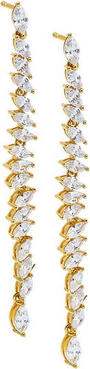 Add this standout piece to your stack with the CZ Marquise Tennis Drop Stud Earring by Adina Eden. Simple yet elevated to add polish to your outfit. Made to be layered or worn on its own for a clean look. Wear it to dress up your daytime or add flair to your night out.