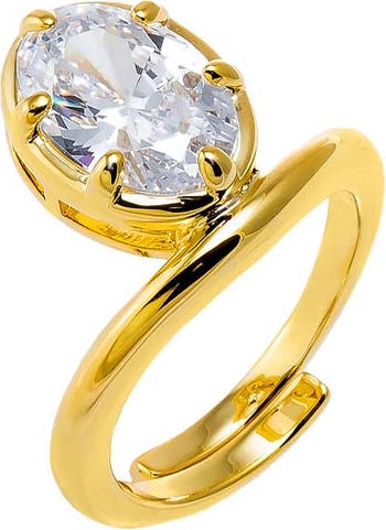 CZ Oval Bezel Adjustable Statement Ring