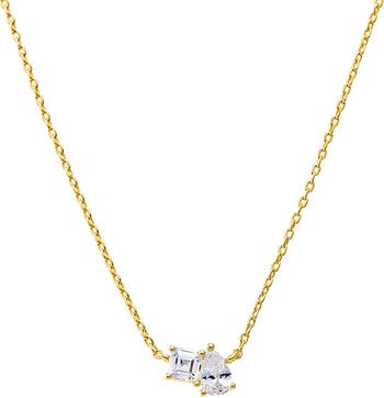 The Adina Eden CZ Princess Cut X Baguette Pendant Necklace is a stunning piece that combines classic elegance with a modern twist. Crafted from durable brass and plated in luxurious 14K gold, this necklace features a 9mm pendant showcasing a beautiful combination of clear CZ stones in both princess and baguette cuts, adding dimension and sparkle. Measuring 15" with a 2" extender, it allows for a customizable fit, making it perfect for layering or wearing alone as an eye-catching statement. This necklace brings timeless sophistication to any jewelry collection, ideal for adding a touch of glamour to any outfit.