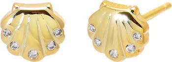 Layer up in style with the CZ Seashell Stud Earring by Adina Eden, a versatile Earrings set for every moment. Designed with versatility in mind, this cute earrings set comes in Gold for any look. From solo errands to group dinners, it transitions with ease while keeping your look smooth, cohesive, and fresh all day. Elevate this gold plated earrings set with selections from the Hoops & Huggies collection to complete your look with ease and style. It blends into your style while still standing out beautifully.