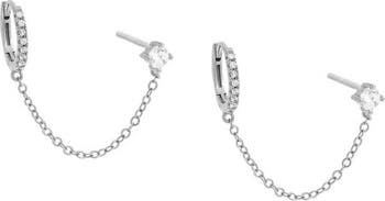 CZ Solitarie Stud X Huggie Chain Earring