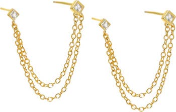 The CZ Square Bezel Double Chain Drop Earring by Adina Eden is the perfect Earrings set to anchor your layering game. Subtle glam takes center stage in this cute earrings set, available in Gold. When your outfit needs polish without the pressure, this piece brings a thoughtful finish to your look without ever trying too hard. Style this gold plated earrings set with styles from the Earring Combo Set collection to make your look feel curated and confident. Effortless and thoughtful—this piece balances polish and ease.