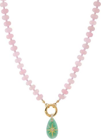 Add glam to your routine with the CZ Starburst Teardrop Natural Stone Pendant Beaded Clicker Necklace by Adina Eden, a playful Necklace with polish. Add a pop of shine with this sleek cute necklace for women, crafted in Rose Quartz, Turquoise and Jade Green for every occasion. When your outfit needs polish without the pressure, this piece lets you show up feeling confident and completely put together. Elevate this gold plated necklace with pieces from our Chain Necklaces collection to make your everyday styling effortless. An instant staple you'll turn to again and again with confidence.