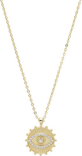 Say more with less in the CZ Sun Evil Eye Necklace by Adina Eden, a clean and classic Necklace. Whether you're dressing up or down, this necklace for women delivers effortless shine in Gold. When your outfit needs polish without the pressure, this piece brings your whole look together while keeping things laid-back. Stack this gold plated necklace with styles from our Chain Necklaces collection to build a signature look you'll love. Effortless and thoughtful—this piece balances polish and ease.