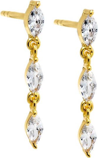 Elegant stud earrings featuring triple marquise-cut CZ stones. Designed to dangle slightly for added movement and shine. A sophisticated choice for any occasion.
