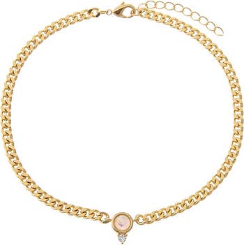 BY ADINA EDEN CZ X Opal Cuban Link Pendant Anklet, Main, color, Gold