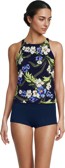 When it comes to a trusted fit that never holds you back, Tugless always delivers and this tankini is no exception. The high neck style will give you plenty of extra coverage from the sun while the beautiful back detail adds a touch of style and adjustability. And thanks to the durable spandex fabric, it maintains its flattering shape and lasts season after season. Pair it with your favorite bottoms to create your perfect swim look.