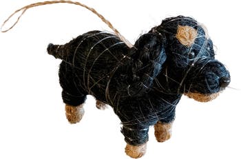 Handwoven by artisans from natural coconut coir, this whimsical ornament brings rustic paw-sonality to any dog lover's decor.