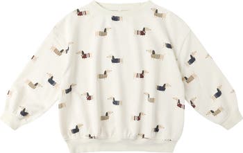 QUINCY MAE Dachshund Print Relaxed Cotton Blend Fleece Sweatshirt, Main, color, Natural