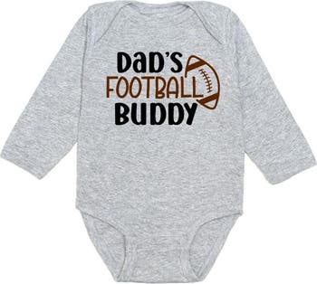The Dad's Football Buddy Black & Brown Long Sleeve Bodysuit is a fun and cute bodysuit for babies celebrating Game Day!