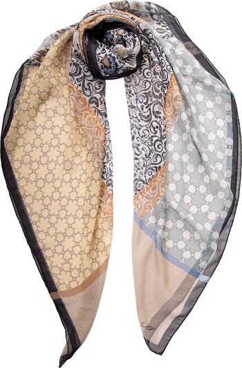 This piece is a true work of art, with a delicate patchwork pattern that goes with almost everything. Made from gossamer-light silk chiffon, it’s designed for the woman who appreciates beauty in every detail and loves having a versatile accessory that she can wear in countless ways.