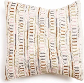 Dahli Coral Hand Woven Hand Embroidered Multicolor White Artisanal Pillow - Cover Only