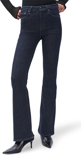 A dark rinse and a flared leg gives these stretchy jeans night-out potential.