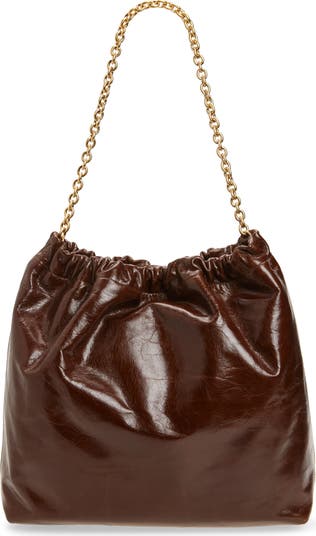 A slouchy, relaxed silhouette topped with a chain strap defines this roomy tote made from sheepskin leather that will just get better with age and use.