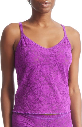 Channel sheer romance in this lacy cami with a soft lettuce-edge hem.