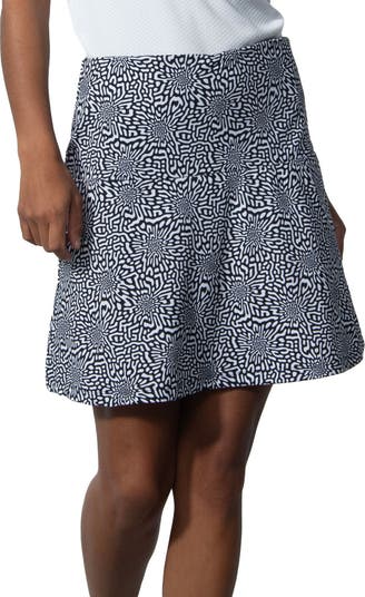 The Daily Sports Kyoto 18 Inch Women's Golf Skort is a blend of classic style and modern sportswear technology, perfect for the fashion-conscious golfer. This skort features a comfortable, stretchy fabric that allows for full range of motion, ensuring you can perform your best on the course. Its quick-drying and moisture-wicking properties help keep you cool and comfortable, while the built-in shorts offer additional coverage and support. The 18-inch length provides a modest yet stylish look, making it suitable for both the golf course and the clubhouse. The elegant pattern inspired by the serene beauty of Kyoto adds a distinctive touch to this practical and fashionable piece.