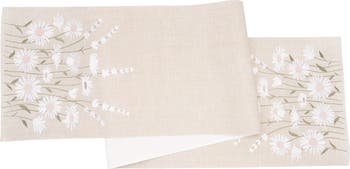 For an elegant table runner with a neutral background, this embellished runner features delicate daisies gracefully extending toward the center of the table linen. This timeless floral display adds an elegant touch suitable for year-round decor. Stay with, and accompany us during our continued home décor magical ventures every season once again years after years.