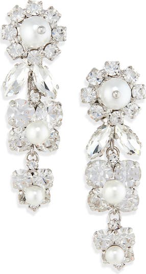 Daisy Cluster Crystal & Faux Pearl Drop Earrings