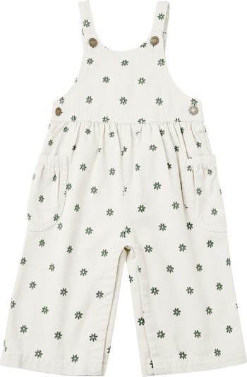 Dainty daisies bring a pop of playfulness to these wide-leg overalls made of structured cotton denim and featuring little patch pockets at the sides.