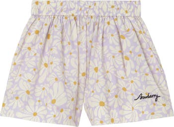 A pair of wide-leg shorts in soft cotton, printed with flower power daisies. The design is shaped with a gathered waist and features an embroidered logo.