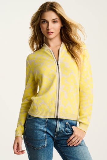 A little whimsy, a little wow. The Daisy Dreamer jacket comes to life in sweater form with an allover flower jacquard that feels both nostalgic and freshly modern. The zip-up silhouette keeps things easy and effortless, while sporty ribbed stripes at the collar, cuffs, and hem deliver a contemporary finish.