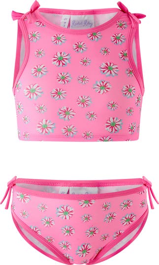 Playful, polished, and perfectly suited for sunny escapes, this Daisy Floral Bikini brings cheerful color and classic Rachel Riley charm to warm-weather swim days. Featuring a vibrant pink base scattered with sweet daisy motifs, the two-piece design includes a cropped swim top finished with delicate bow details at the shoulders and coordinating bikini bottoms with adjustable side ties for a comfortable, flexible fit.