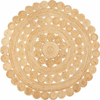 Our flat-weave jute medallion rugs bring a modern hippie vibe to the living room, bedroom, or home office. Versatile, easy-care natural fibers are the perfect neutral flooring for your minimalist coastal cottage or colorful Boho home. Handmade by skilled artisans, this rug's concentric circles add a stylish geometric touch.