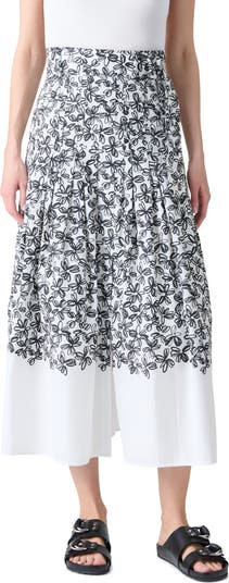 A signature dot appliqué at the end of the belt and (almost) allover sketched-daisy print distinguish this pintuck-flared midi skirt made from cotton poplin.