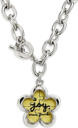 A signature daisy-shaped locket showcases a functional and magnetic puzzle on a gleaming chain necklace that's the perfect piece to complement your stylish looks.