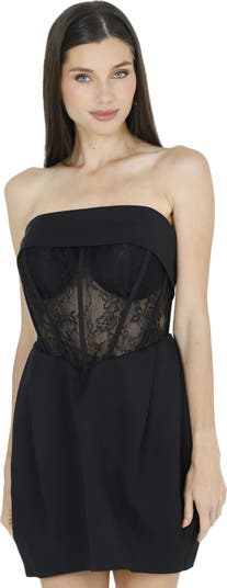 Elevate your wardrobe with our Daisy Strapless Lace Corset Dress. Crafted from top-quality materials, this dress boasts a modern and sleek interpretation of the classic structured corset. The curve-accentuating silhouette, lace panelled corset, and flattering boned bodice create an alluring and sophisticated look. With delicate floral lace trimmings, this dress exudes luxury and elegance. Made in Turkey Where to wear:Pretty date nights, romantic dinner dates, a night out with friends, special events, parties. Team yours with:Black tights, black stiletto heels and a clutch. Underwear:No bra required due to the softly shaped cups. Specifications:Main - Stretch CrepeLining - Rayon Stretch Factor: Little Stretch