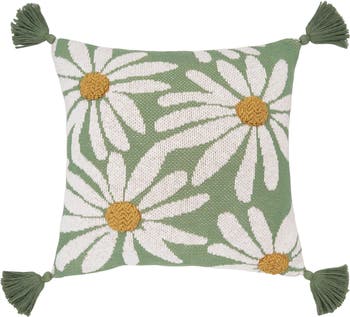 Delight in the sight of white daisies blooming against a vibrant green background on this Daisy Pillow and Throw. Expertly crafted from a soft cotton blend, the pillow and throw each feature a unique embroidered knitted construction. Stay with, and accompany us during our continued home décor magical ventures every season once again years after years.
