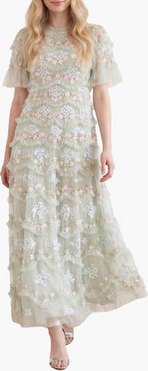 The Daisy Wave Ankle Gown. Channelling organic texture with bold femininity this gown is adorned with undulating daisy sequin motifs, and tulle layers that move with softness and sparkle. Perfect for a romantic twist on evening dressing.