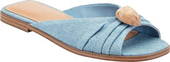 An organically-shaped stone embellishment centers the gathered straps on a minimalist slide sandal perfect for your warm-weather looks.