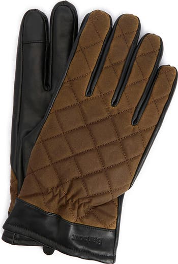 These quilted waxed-cotton gloves bring water-repellent poise to cold days, complete with a leather palm grip that steadies your hold and a soft fleece lining for enhanced comfort.