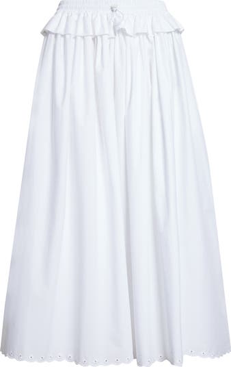 The Danish designer's reverence for romance springs forth in this crisp cotton-poplin midi skirt bookended by a flouncy ruffle and scalloped trim wreathed in pretty eyelet blooms.