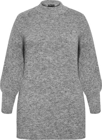 A longline silhouette provides extra warmth to this mock-neck sweater shaped by soft ribbing and finished with a slit at the hem that creates an asymmetric look.