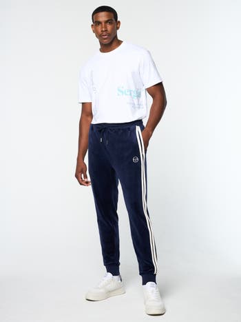 A premium take on a Tacchini classic, the Damarindo Velour Track Pant is crafted from plush velour for a luxurious feel. Topped with a comfortable rib-knit waistband, these elevated track pants are complete with double stripe taping down the legs, spacious pockets, and our iconic 'ST' monogram logo embroidered at the left thigh.