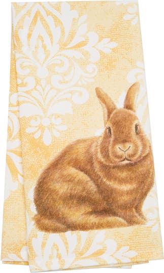 Elevate your dining room with our delightful 100% cotton Easter-themed tabletop collection! Featuring a bright blue distressed vintage background adorned with exquisite geometric and botanical white damask accents, add a pure and elegant vibe to the holiday season. Plus, an adorable illustrated realistic brown furry rabbit, this springtime is sure to bring a smile to your face.