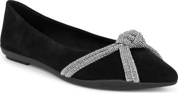 A crystal-embellished knot accents the vamp of this suede flat designed with a pointy toe and cushioned with an OrthoLite® footbed for lasting comfort.