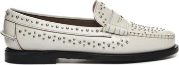 Balancing classic charm with contemporary appeal, this take on our classic Dan shoe rewrites the codes of the iconic penny loafer. Crafted from high-quality leather, its silhouette is characterized by a round toe and hand-stitched apron, supported by a flexible, resistant and waterproof leather sole. Small all-over stud embellishments add an extra-special touch and a hint of statement rock attitude.
