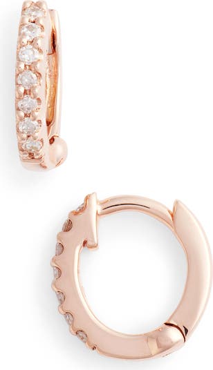 Designed to hug the ear for a subtler profile than a classic hoop, these darling diamond earrings are offered in three different shades of gold.
