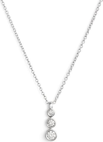 When a pendant necklace features a trio of bezel-set white diamonds, the result is definitive dazzle.